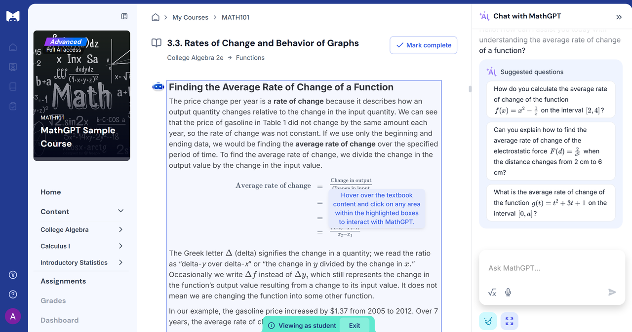 الأدوات التفاعلية: MathGPT.AI يتيح لك التفاعل مع الكتب الدراسية