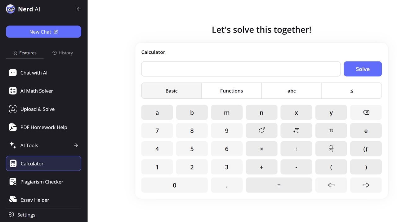يوفر Nerd AI آلة حاسبة رياضية أساسية Calculator