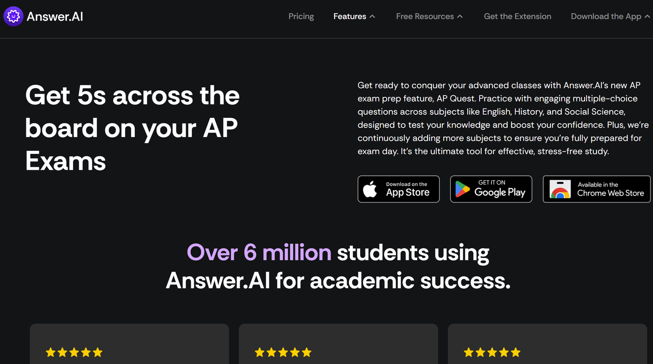 - Try Answer.AI if you’re looking for a broad learning assistant that provides personalized tutoring across various subjects, including math, language, and science. With features like AP exam preparation and study group collaboration, Answer.AI excels in providing a well-rounded learning experience.
